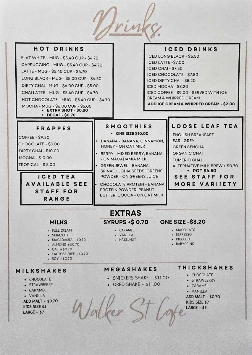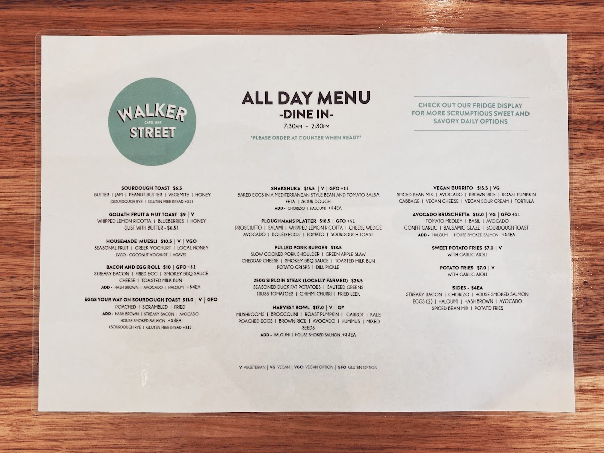 The cafe boasts a diverse range of offerings that cater to various tastes, highlighted by their renowned steak sandwich, which patrons rave about for its tender, juicy meat and perfect combination of BBQ sauce and crusty bread. Moreover, families will find delight in the Kids Menu, featuring favorites like Bacon and Eggs, Nuggets & Chips, and Kids Waffle, all priced at a reasonable A$12.00. It’s these thoughtful touches and family-friendly options that make Walker Street a favored spot among locals.